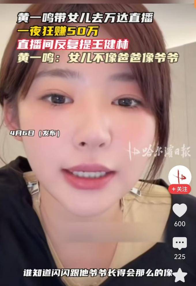 当黄一鸣进行直播时,她总是提到闪闪与爷爷有着惊人的相似之处。她深知人们喜欢她提及女儿闪闪、王思聪和王健林,因为只有当大家愿意倾听时,她才能吸引更多的目光。