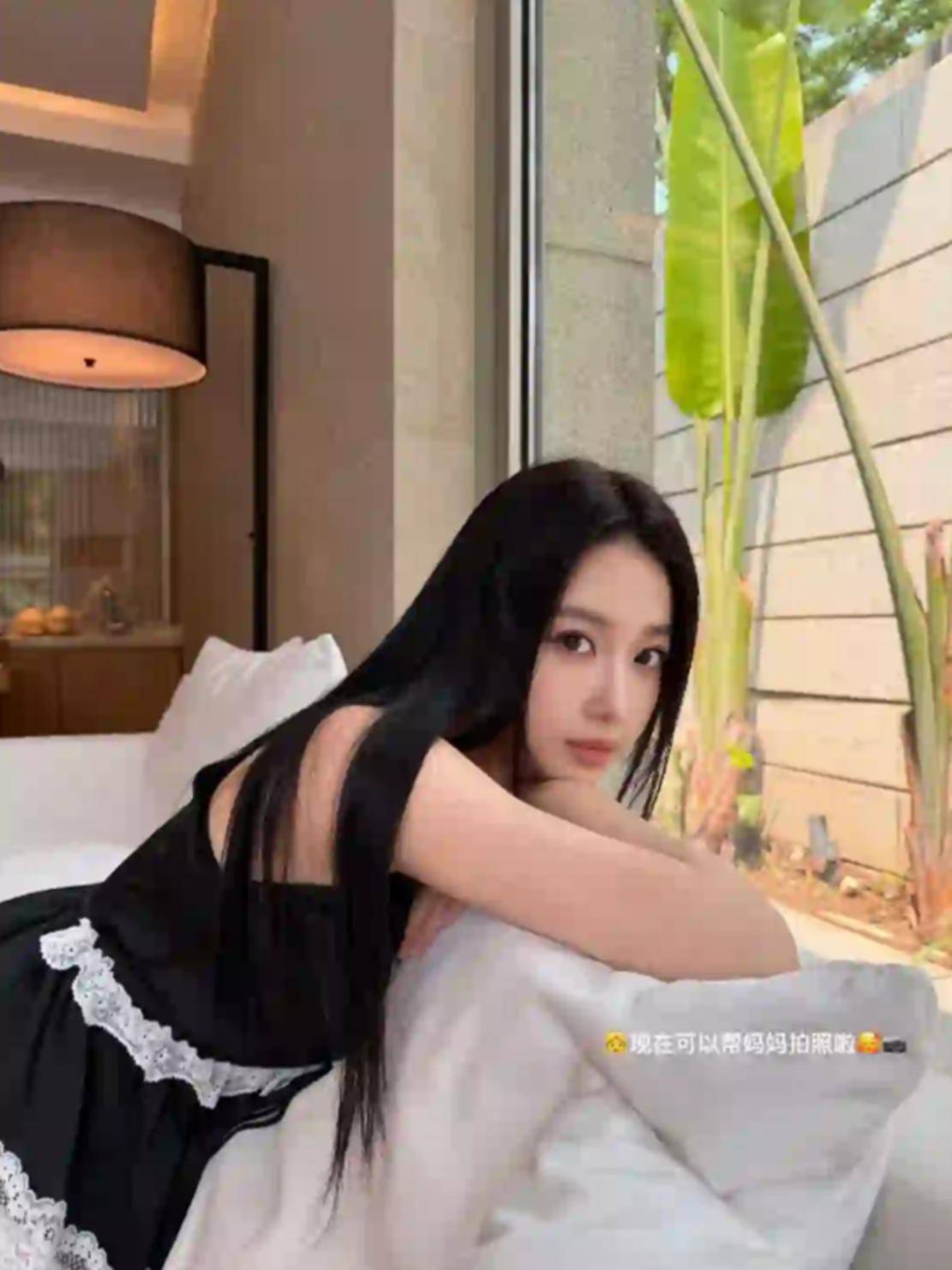 除此之外,宣云还分享了一张由女儿为她拍摄的美照。照片中的宣云,一头乌黑柔顺的长发自然垂落在肩头与背部,光泽感十足。她穿着一件黑色的无袖连衣裙,裙身上的白色蕾丝花边装饰让她的整体造型多了一丝甜美与复古的气息。她倚靠在柔软的白色床品上,双臂交叠枕在头下,整个人看起来放松而慵懒。小公主的摄影技术相当了得,照片的画质不输大片,完美地展现了妈妈的美丽与温柔。