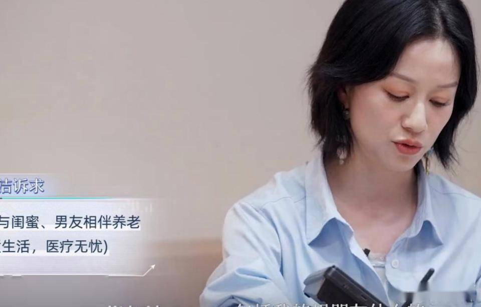 节目里张泉灵问她,养老的钱怎么出。 倪虹洁回答:“我出呀。 ”张泉灵提醒她,如果有一天糊涂了,钱花不到自己身上,身边人因为这笔钱打起来怎么办。 倪虹洁说,她不希望至亲参与医疗决策,因为他们会带有感情色彩。