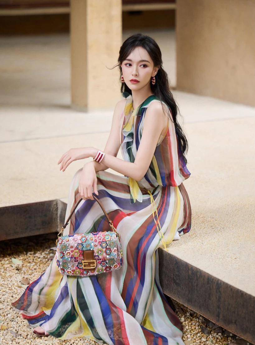 唐嫣作为FENDI全球品牌代言人,她每次出席品牌活动都自带高光,这次也不例外。 唐嫣穿了一件彩色条纹无袖薄纱长裙,雪纺材质轻盈飘逸,半扎长发搭配精致红唇妆容,仪态舒展又大气,完全是顶级女明星的姿态。