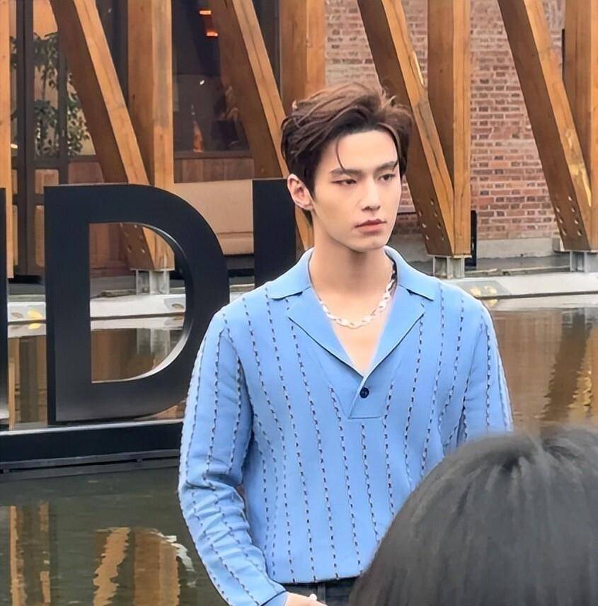 要说当晚最惊喜的,还得是新生代艺人何与。 他没穿那种花里胡哨的高定撑场面,选了FENDI 2023冬季胶囊系列的浅蓝V领条纹针织衫,搭深色直筒牛仔裤,拎着品牌的Lui手袋,就加了一条银古巴链点缀。