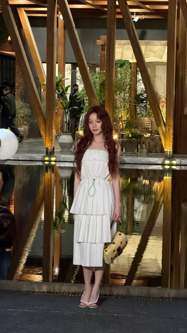 宋雨琦当天特意染红了头发,穿了一条白色长裙,造型吸睛又亮眼,看得出来是精心准备过的。