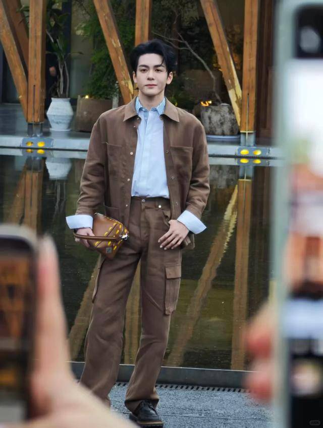 要说当天造型最有质感的男星,曾舜晞绝对算一个。他穿了一身棕褐色工装外套,妥妥的美拉德色系,沉稳又高级。
