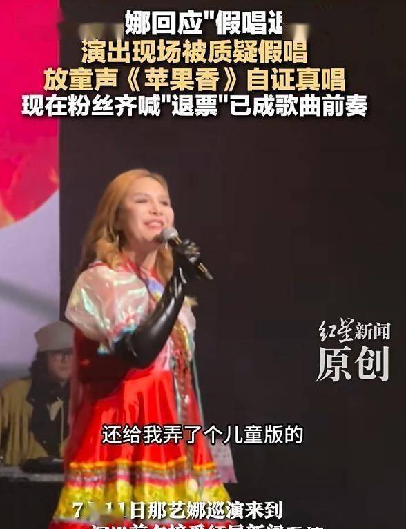 可流量带来的膨胀,让她彻底忘了底线。2025年杭州巡演时,她唱《苹果香》全程对口型播放童声录音,被观众当场识破喊 “退票”,她不仅不道歉,还把这当成营销噱头,后续演出主动引导观众喊 “退票”,甚至写进个人简介。
