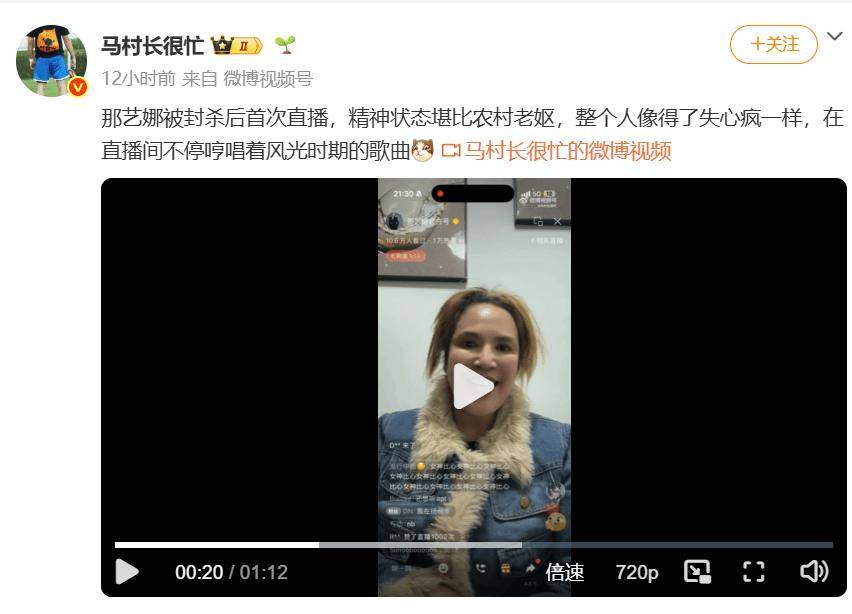 刚刷到一条让我瞳孔地震的博文,标题直接把人看傻:“ 劣迹艺人那艺娜解封杀后首直播,精神状态堪比农村老妪,哼唱风光时期的歌曲”。