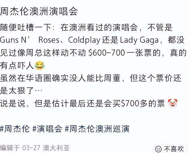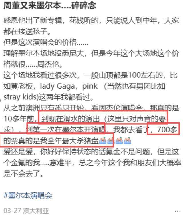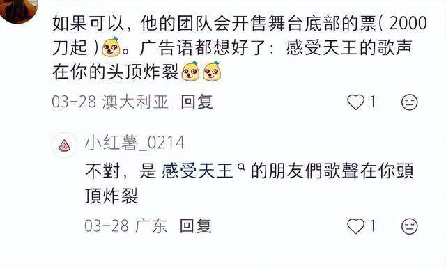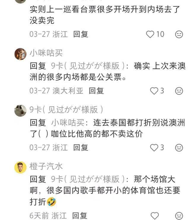 他对国内外倒是一视同仁,在国外的演唱会同样拉垮,今年下半年的澳洲演唱会官宣定价之后,歌迷都抱怨纷纷,指责起了他的高票价。