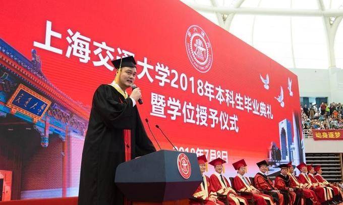 2018年7月,38岁的姚明身着加长学士服,站在本科生毕业典礼的讲台上,作为毕业生的代表发言,台下响起雷鸣般的掌声。