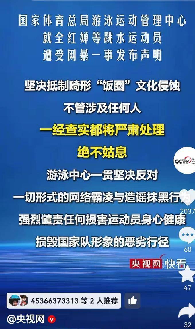 接着,国家体育总局游泳运动管理中心也发表了一份声明,坚定地支持利用法律途径来保护运动员的合法权益。这些不正常的“饭圈”早就需要进行整改了。