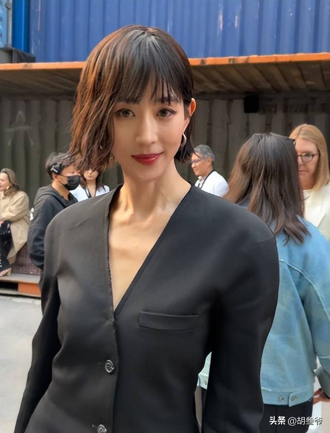 记得她前段时间出席马吉拉品牌活动的时候,一头利落短翘短发搭配黑色西装裙,又酷又飒,气场直接拉满。