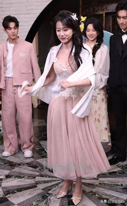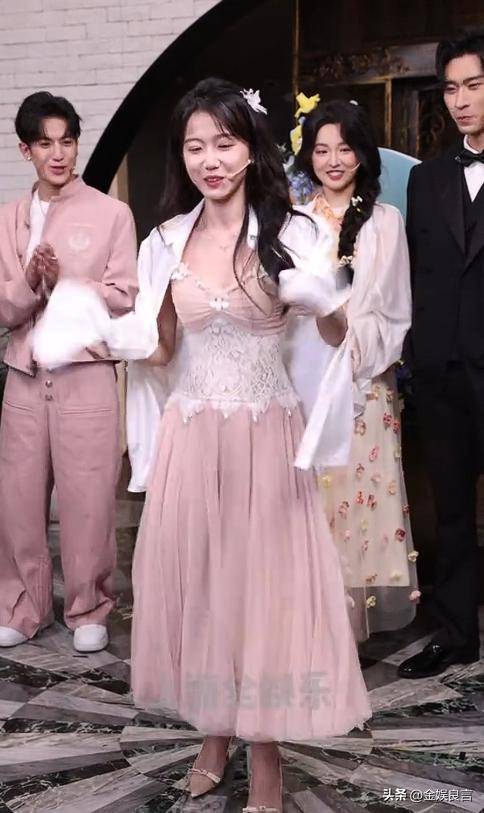 业文站在那里,身材五五分的比例被暴露得一览无余,上身和下身几乎一样长,全身上下打扮的粉粉嫩嫩的,不仅没遮住短板,反而显得更加臃肿,一点演员气场都没有,站在人群里毫不起眼。