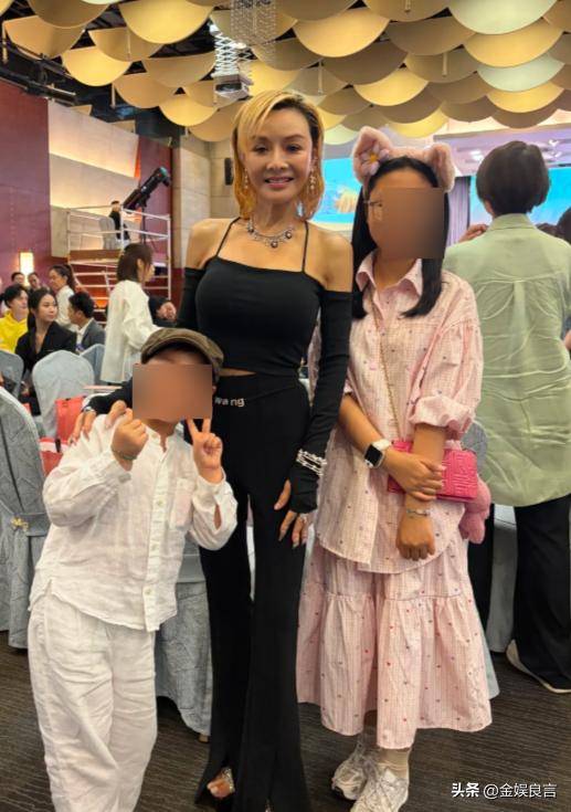 60岁的叶子楣,这次也现身了宴会,她还是一头亮眼的黄发打扮,穿着一件露肩吊带上衣,勾勒出依旧傲人的身材,一点都不像60岁的人。