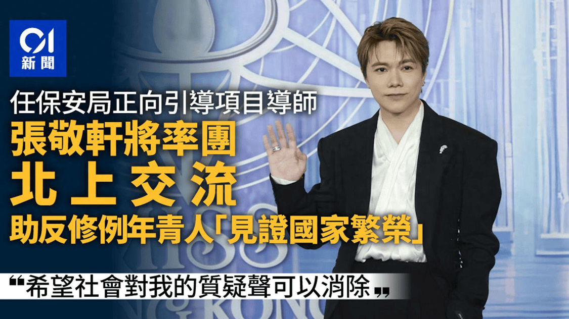 于是,张敬轩高调宣布,要带领项目参与者前往内地交流,“亲眼见证国家的繁荣昌盛”;要通过自己的演艺训练学院,“推广优秀的中华文化”;还要“投身大湾区建设,促进两地文化交流”。