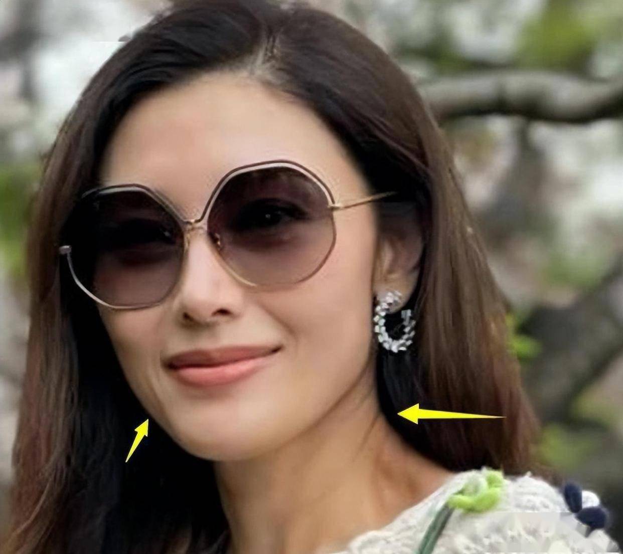 照片在网络上流传开。 远看,她身材依旧纤瘦挺拔,站在樱花树下侧影轮廓清晰。 但镜头拉近,争议就来了。 几张仰头的照片里,脖子上的皮肤比脸部更黄一些,色差明显。