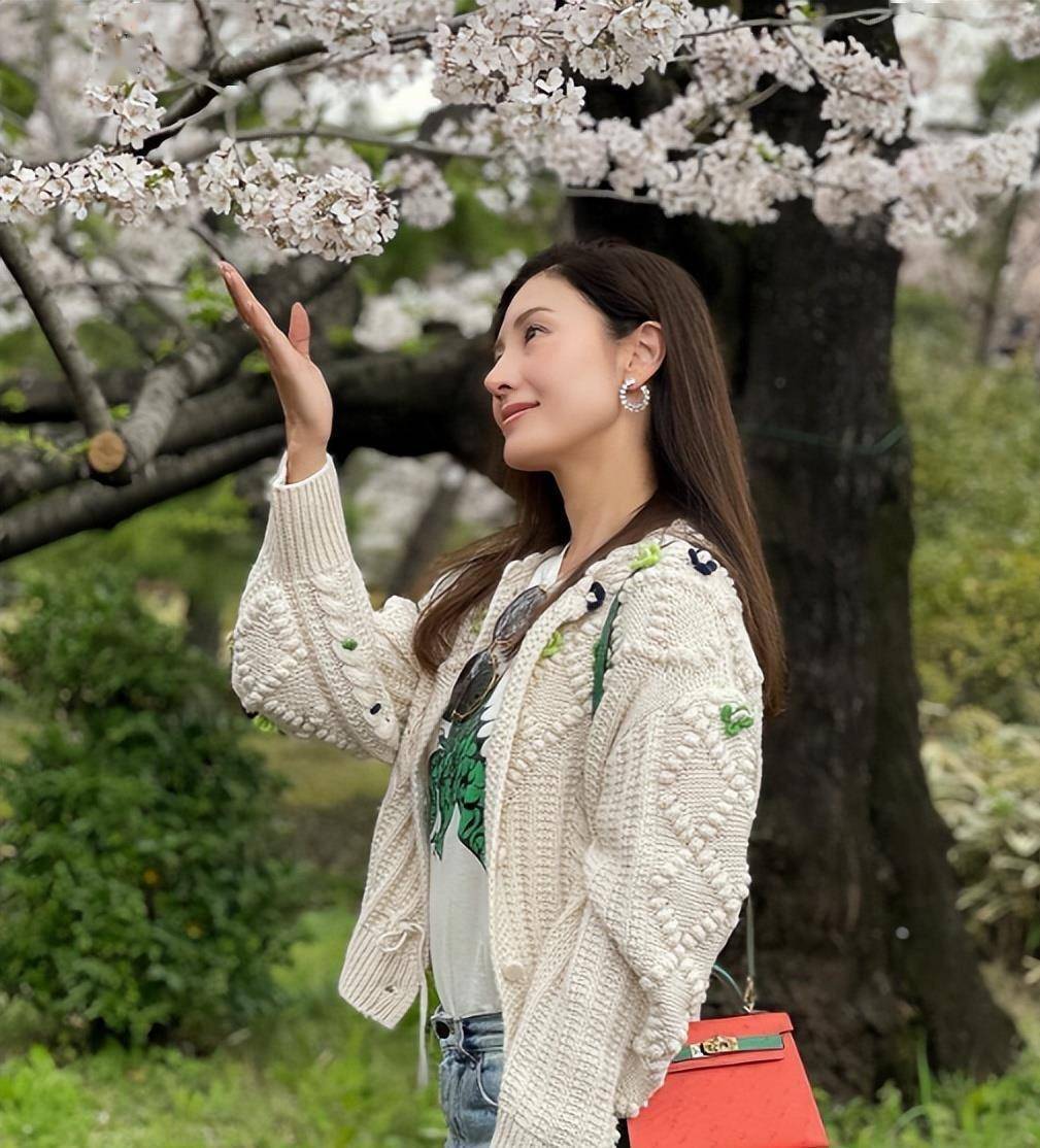 那次也被形容为“打回原形”。时间再往前推,2026年4月12日,她自己在社交账号上分享过樱花照。 照片里的她穿着深蓝色镂空上衣,皮肤白滑紧致,配文写着“享受2026年的樱花时刻”。 精修过的图片和路人偶遇的生图,呈现了两种面貌。