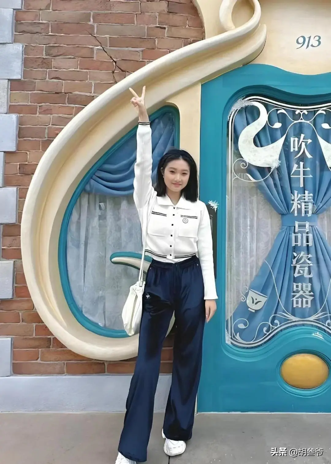 当天她穿了一身清新的蓝色套装,长发披肩,身形丰腴匀称,不是那种干瘪的瘦,自带大气舒展的美感,脸型和神态都像极了妈妈马伊琍,辨识度拉满。