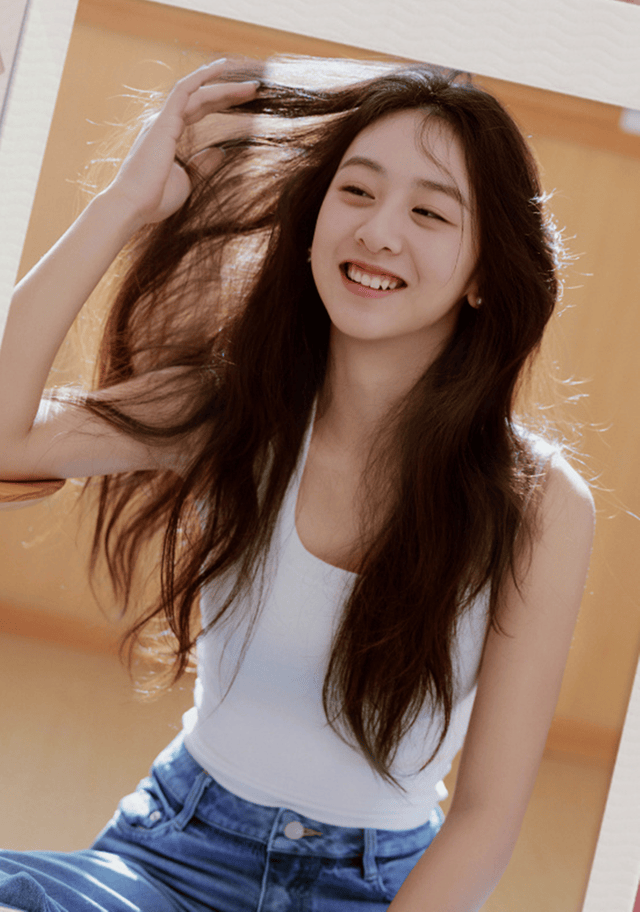 晒出的写真中,森碟穿着简约的白色无袖背心,搭配宽松牛仔裤,一头蓬松的长发自然垂落,笑起来眉眼弯弯,满是青春少女的元气与明媚。
