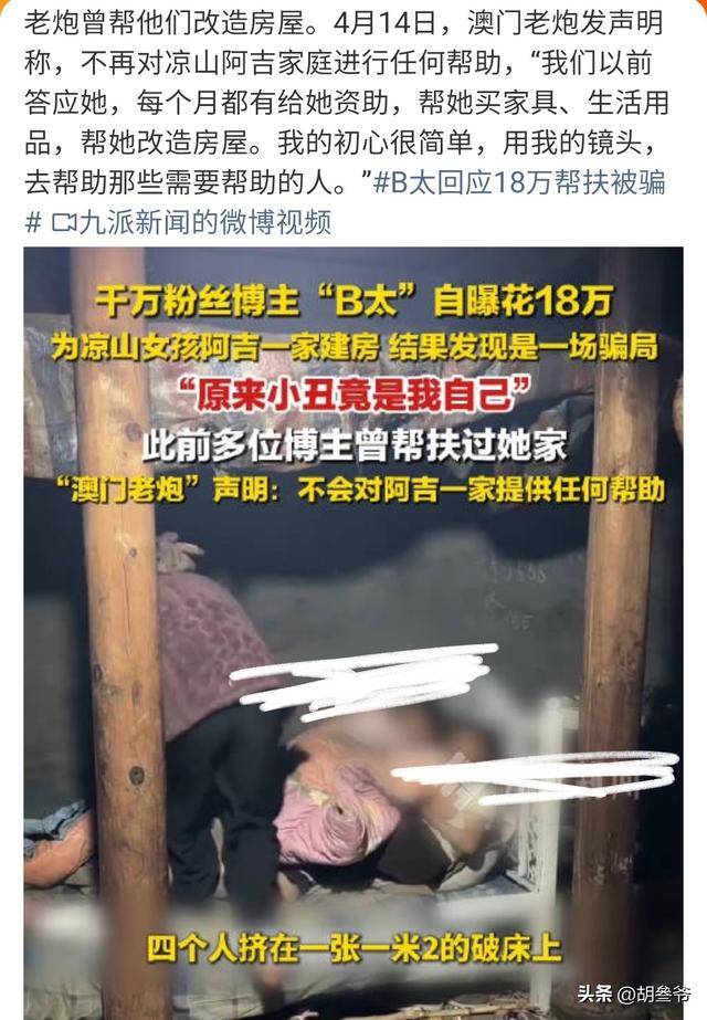4月15日,打假博主B太帮扶四川凉山女孩阿吉建房被骗的消息,在短视频平台全面刷屏。