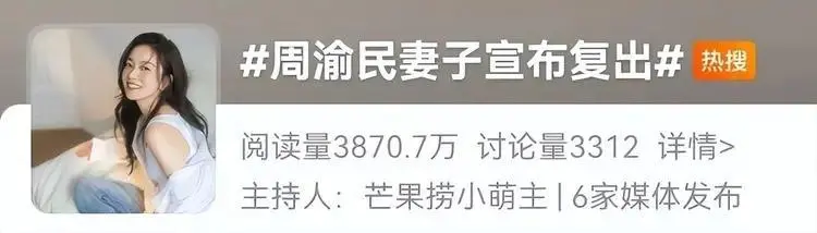 比如最近周渝民的妻子喻虹渊宣布复出,热搜只字未提她的名字,而是用“周渝民妻子”作为称呼。