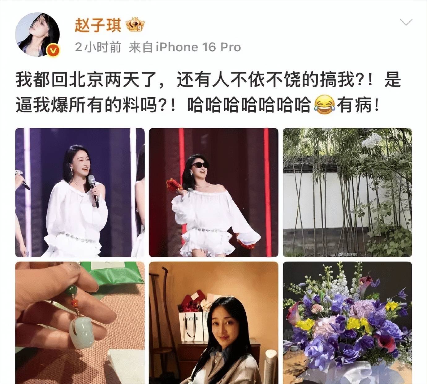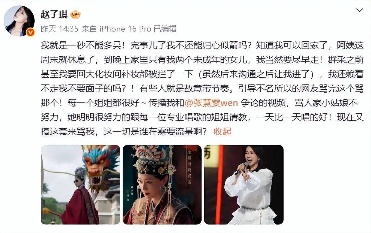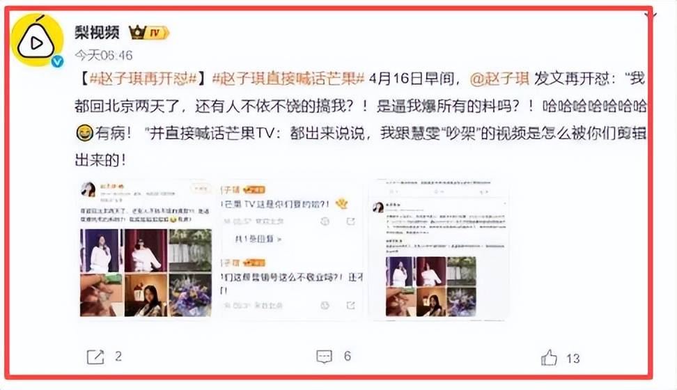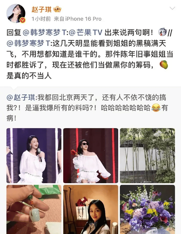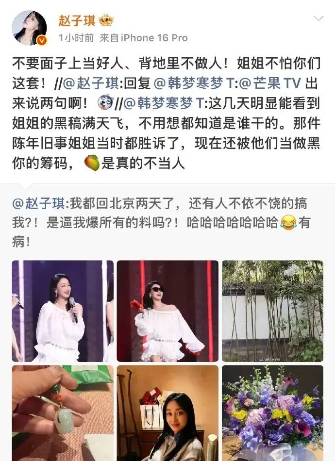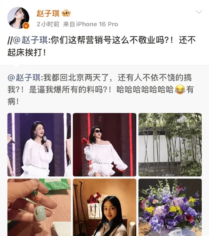 赵子琪这波不是“情绪上头”的一条动态,是连着发、接着追、还@到你脸上的“连环问”。