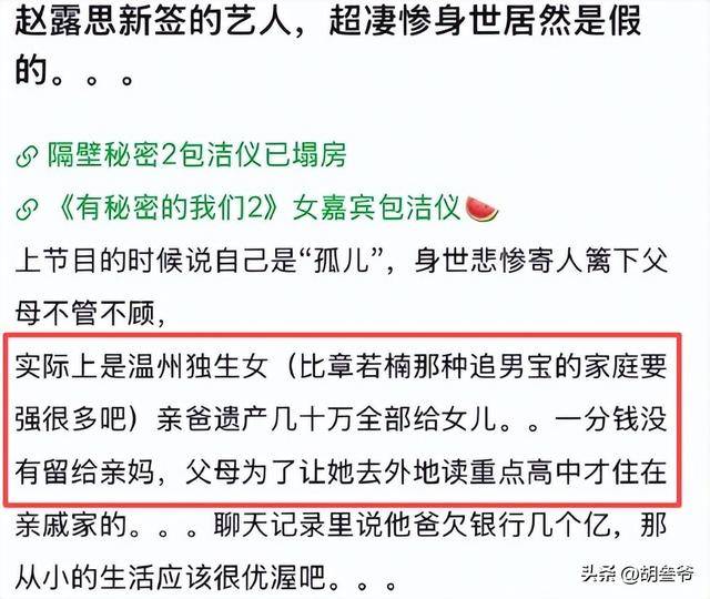 之前在恋综里靠“孤儿逆袭”圈粉无数的浙大才女包洁仪,被扒出全是精心编造的剧本,温州富家独生女的真实身份。