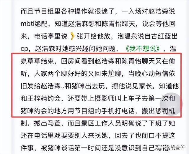 她明明知道男嘉宾在和别人约会,还特意带着摄影师跑到约会现场打电话骚扰;景区已经下班,她非要逼着对方赶过来赴约,事后又把责任推得一干二净。