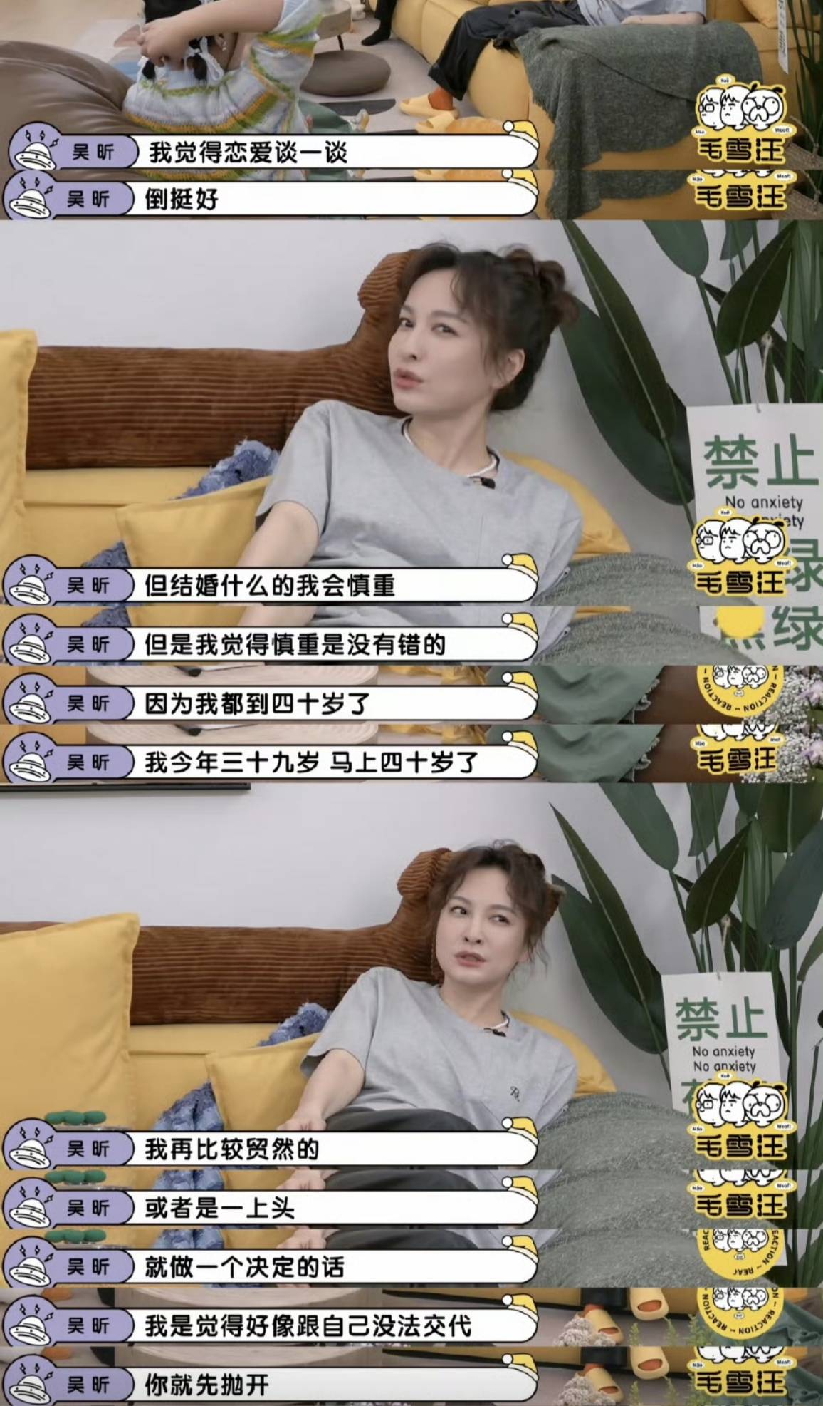 更绝的是吴昕的婚恋观进化史——2022年她说"恋爱可以谈谈,结婚要慎重,毕竟四十岁了,贸然决定没法给自己交代"。翻译一下:姐不是不婚主义,是"幸福主义"!七年恋爱不急着领证,先享受爱情,这波操作堪称"人间清醒"!