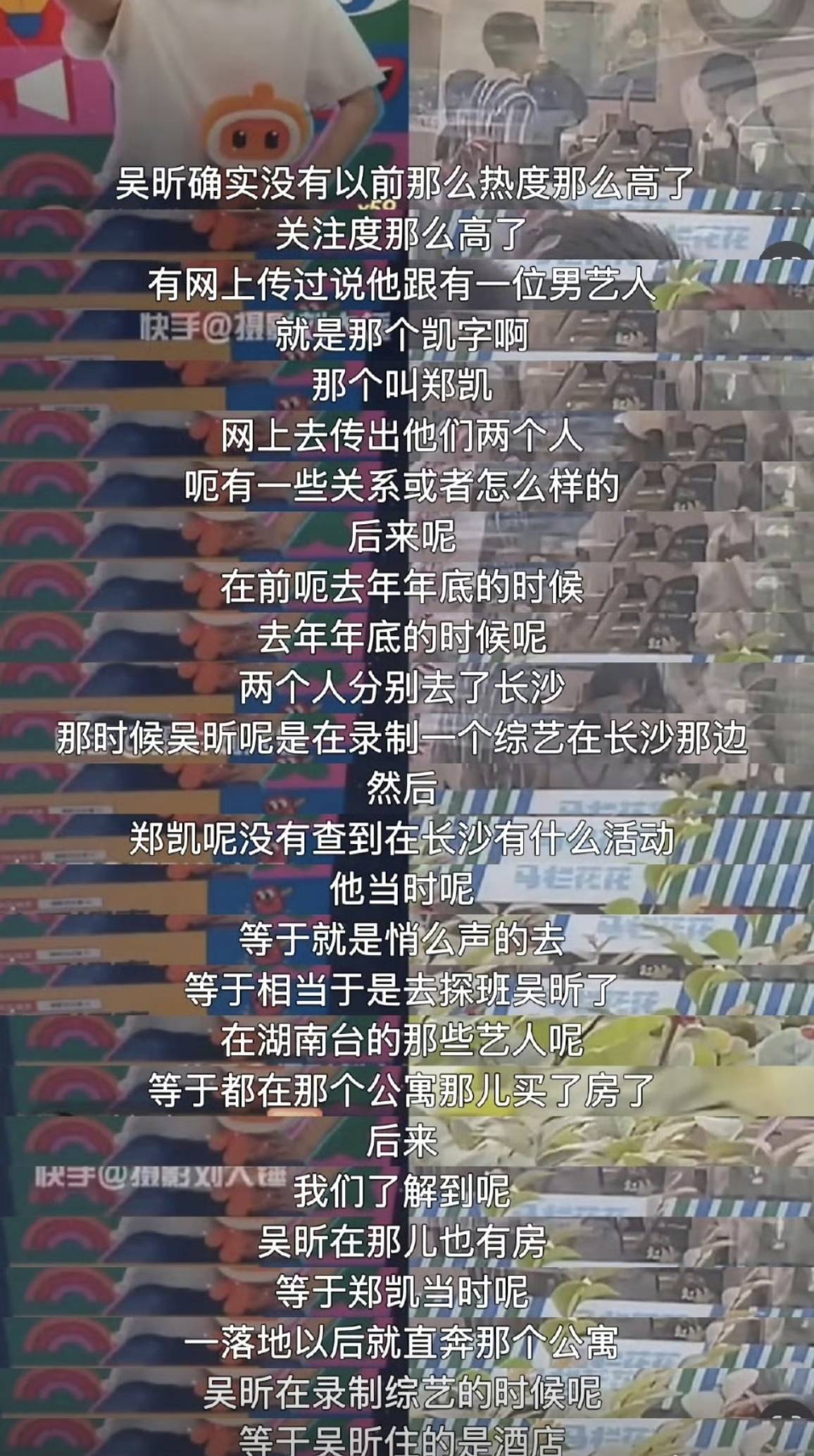 2023年,网友爆料偶遇吴昕和郑凯父母同游新疆——见家长了家人们!2024年6月,刘大锤爆料两人已同居,感情稳如老狗。直到今天,七年恋情终于"见光死",网友辣评:"吴昕这是把《快乐大本营》的保密协议用到恋爱上了?"