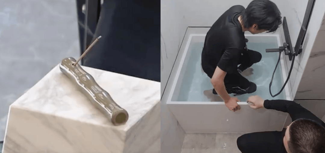 因此他家里的细节更显用心: 床头的饮水机、氛围感香薰灯、床前的幕布投影仪,连卫生间都有香薰石和专用音响,厨房食材也整理得井井有条。