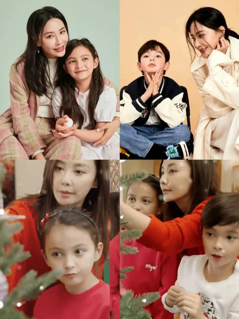 马雅舒站在后面,手搭在孩子肩上,不抢镜,不摆“女明星营业款”姿势。
