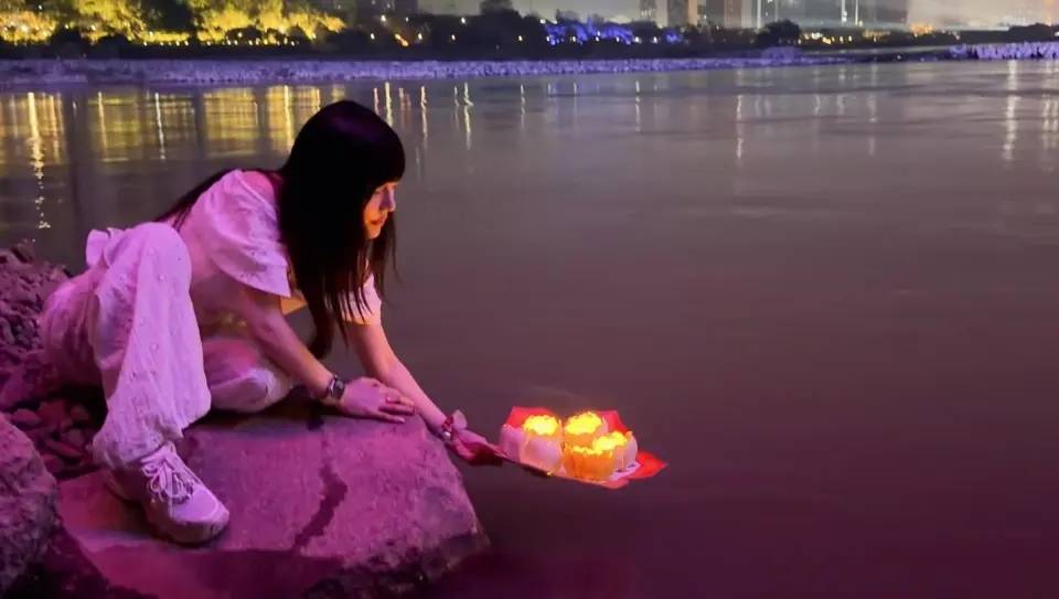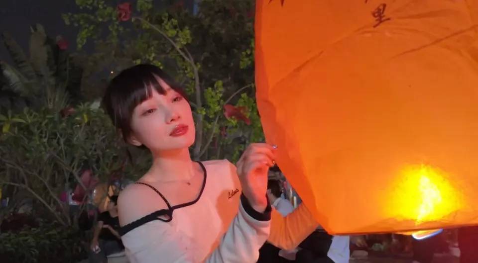 吃完也没急着走。她去体验放水灯,灯一放,水面一荡,周围人说说笑笑,像把白天的喧闹收进了夜里。那种感觉很直观:不是打卡,不是营业,更像在给自己放个假。