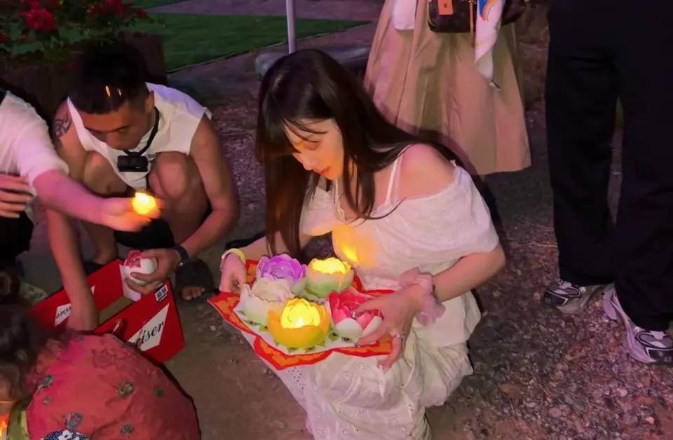 她在泼水节人群里跳舞那一刻,像给很多人递了个台阶:你不必永远端着。你可以学个新舞步,可以在人潮里笑出声,可以在旅行里放一盏水灯,把心事交给水面漂走。