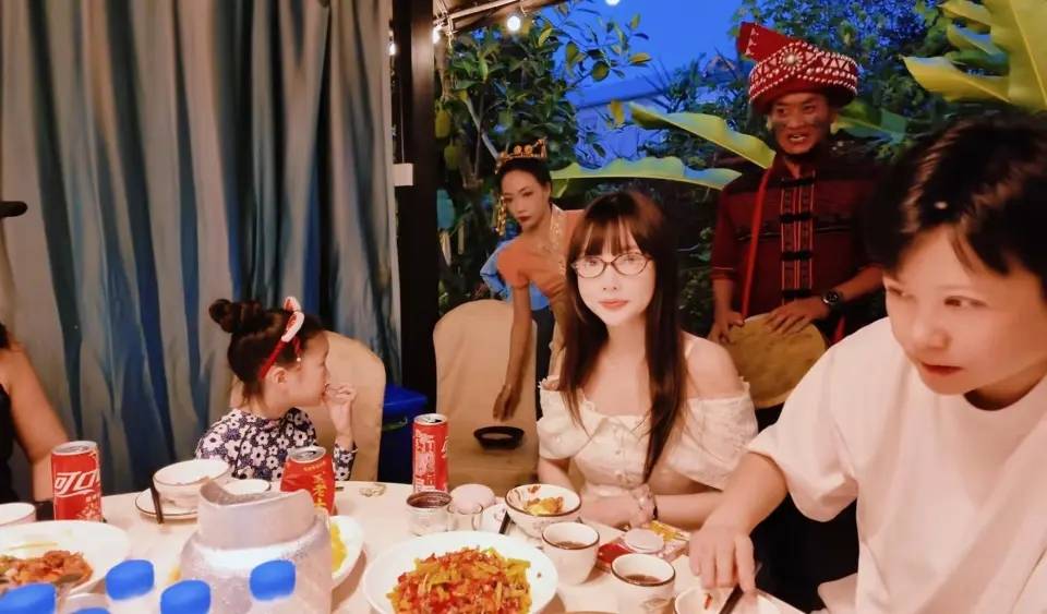 李小璐出现在这种场合,最容易翻车的不是妆花不花,是“端着”。可视频里她没端。她就站在人堆里,听着现场有人唱歌助兴,跟着节奏点头,吃饭的时候还在尝当地特色菜,筷子夹得干脆利落,像来旅游的老熟客。