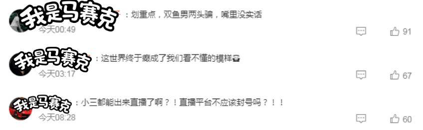 可另一方面网友的谩骂铺天盖地地涌来:“小三也要吃互联网这口饭了吗?那网友算什么,你们几个人play中的一环吗?”