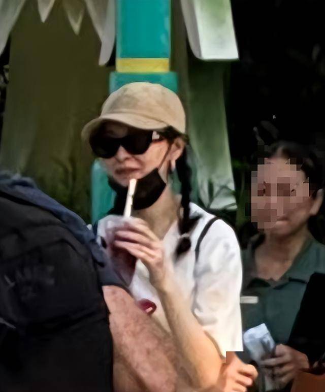 可她的墨镜都遮不住法令纹了,法令纹和她少女感的小辫子搭配在一起,违和感很重。