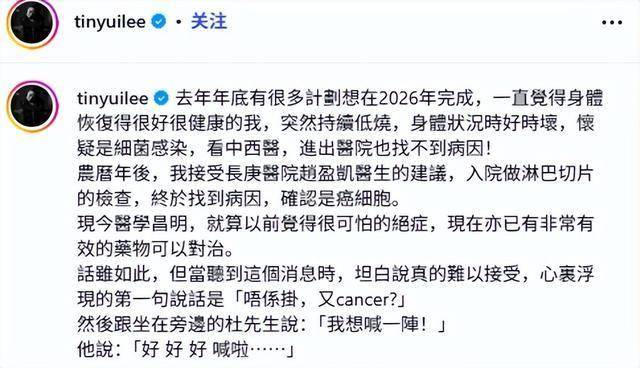 早在二零二四年,她便曾被确诊患有肺腺癌,彼时尚属零期,根本不足以危及性命,