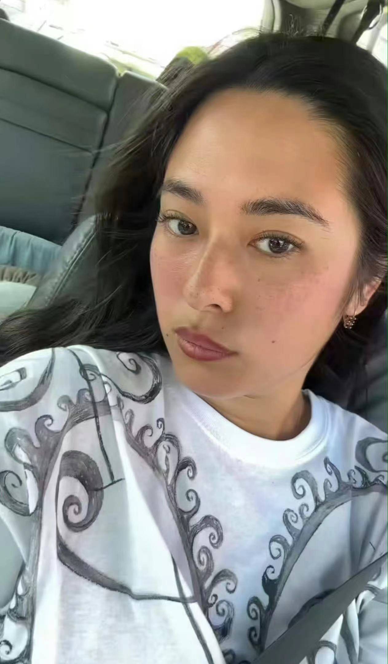 姜文和法国籍前妻所生的女儿姜一郎在4月21日发布对镜自拍,照片中的她孕肚显著,估计已经处于孕晚期,至少有七八个月了,这是她和法国籍老公的第一个孩子。