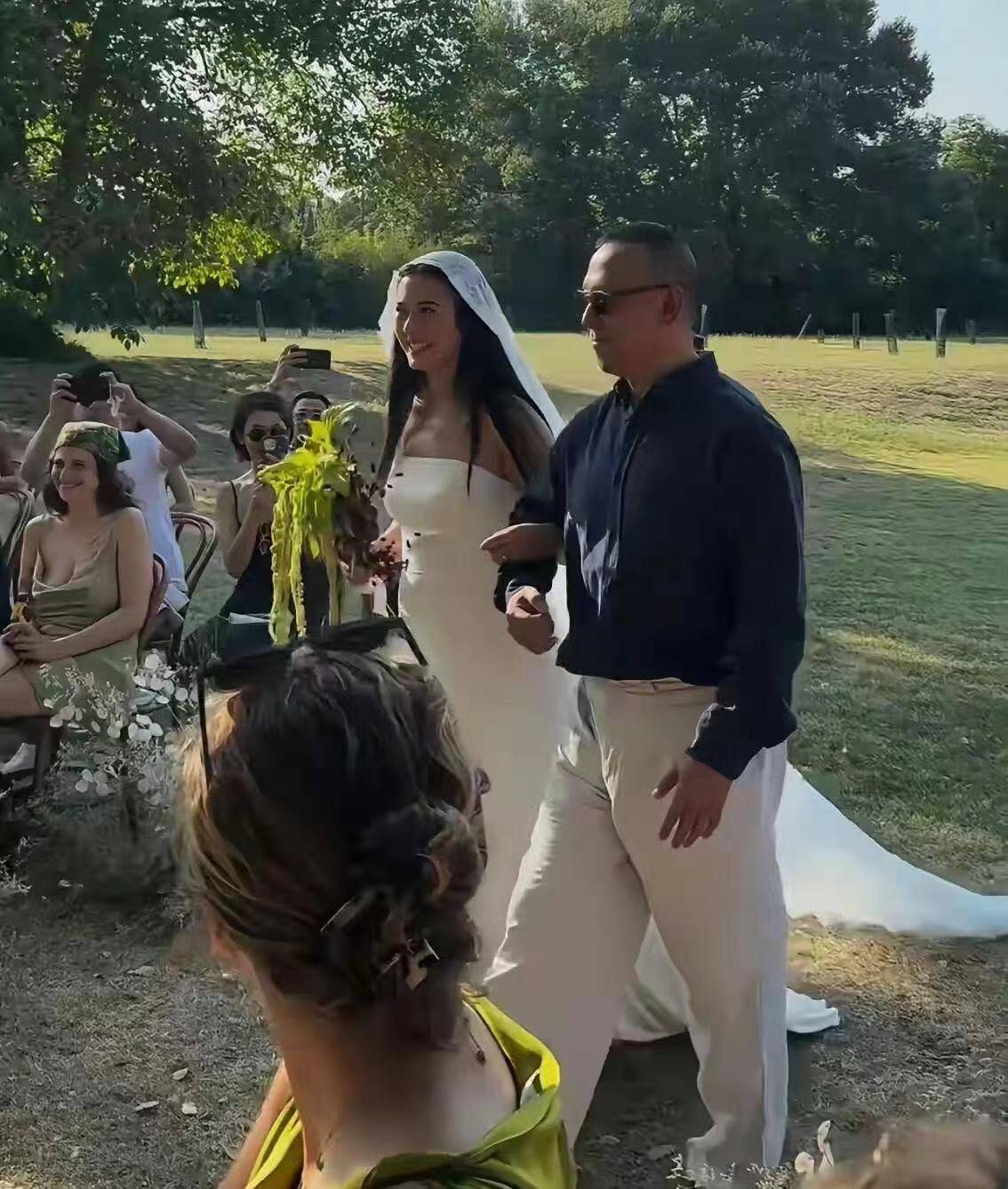 姜一郎的老公为法国职业模特,两人因为工作相识多年,婚礼采取简约草坪仪式,新郎宣誓时激动落泪,也是很感人。