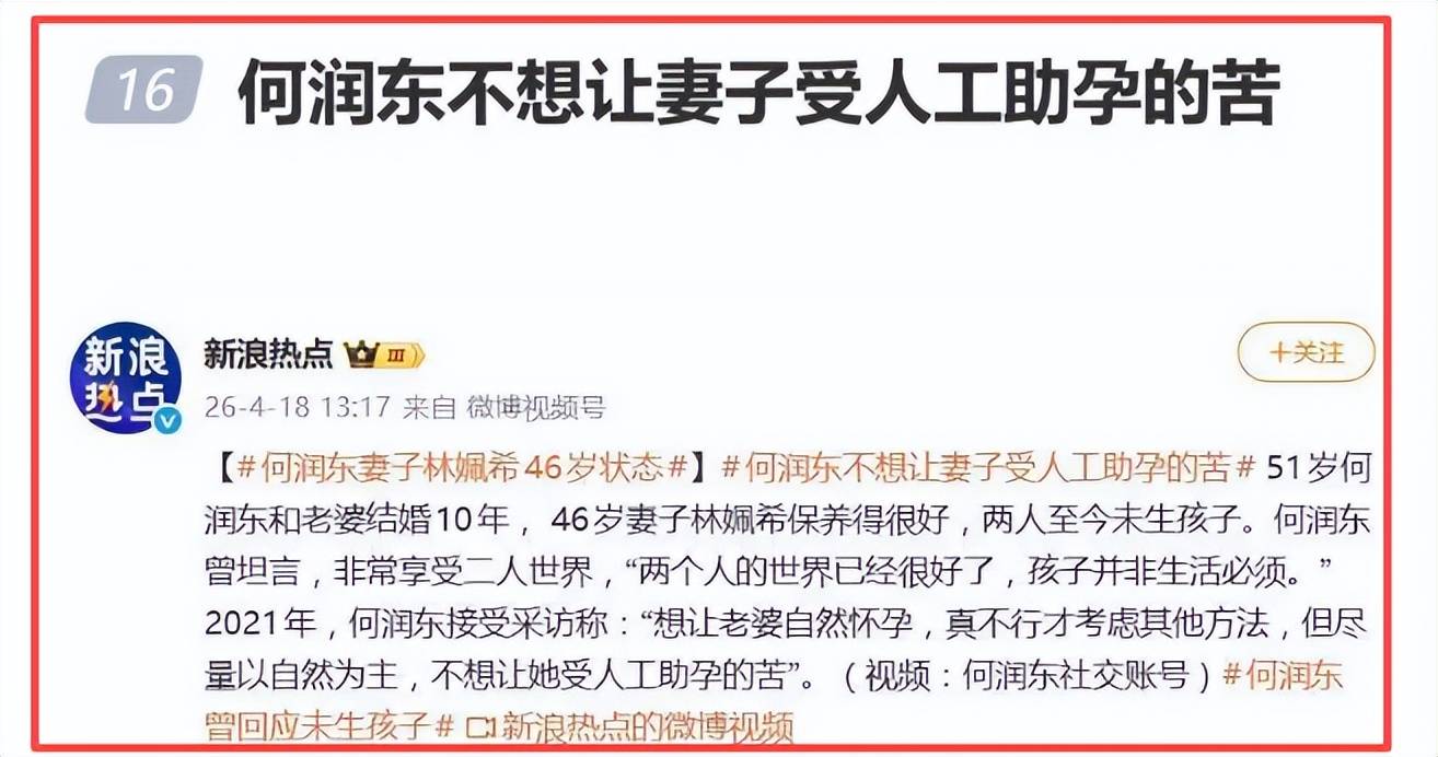 说到何润东的婚姻,绕不开一个“老问题”:孩子。结婚十年还没娃,热心网友比亲戚还急。