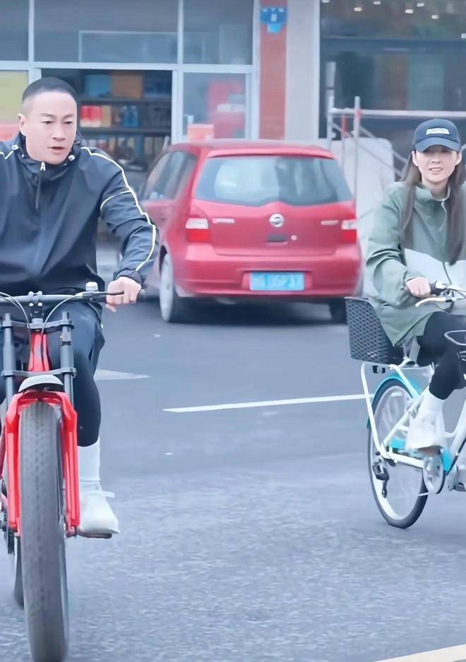 她跟何润东一起出现在街头,不抢镜,不硬凹。你看她把袋子放进车筐那一下,就很真实——不是“我嫁给你了你养我”,是“我俩把今天的早餐搬回家”。