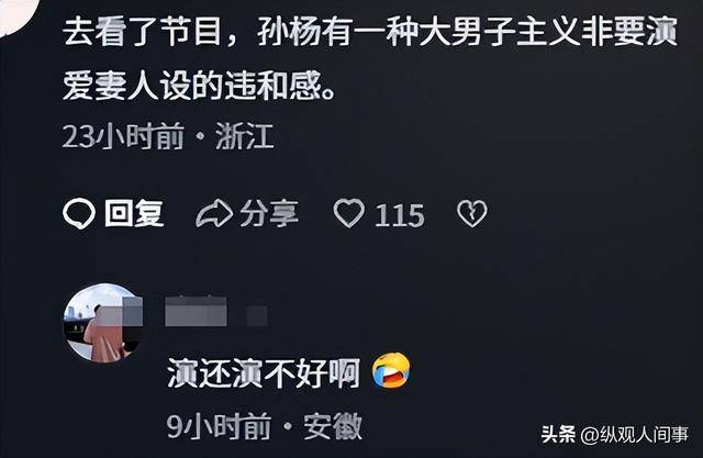 网友一针见血:“像是大男子主义故意装爱妻人设,太违和了。”