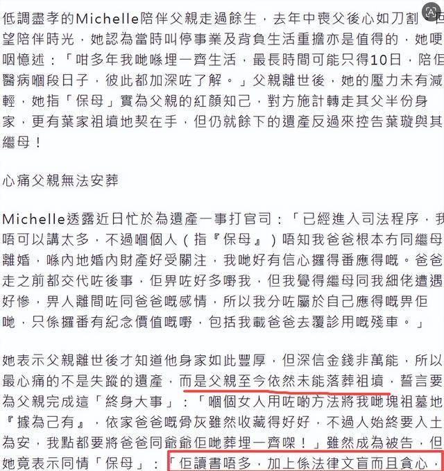 据港媒透露,起诉叶璇的这名女子,是她父亲晚年长期聘用的贴身保姆。
